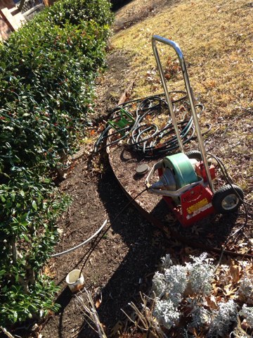 Cleaning a blocked drain causing a toilet to back up. Barbosa plumbing & A/C to the rescue!