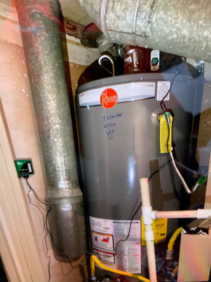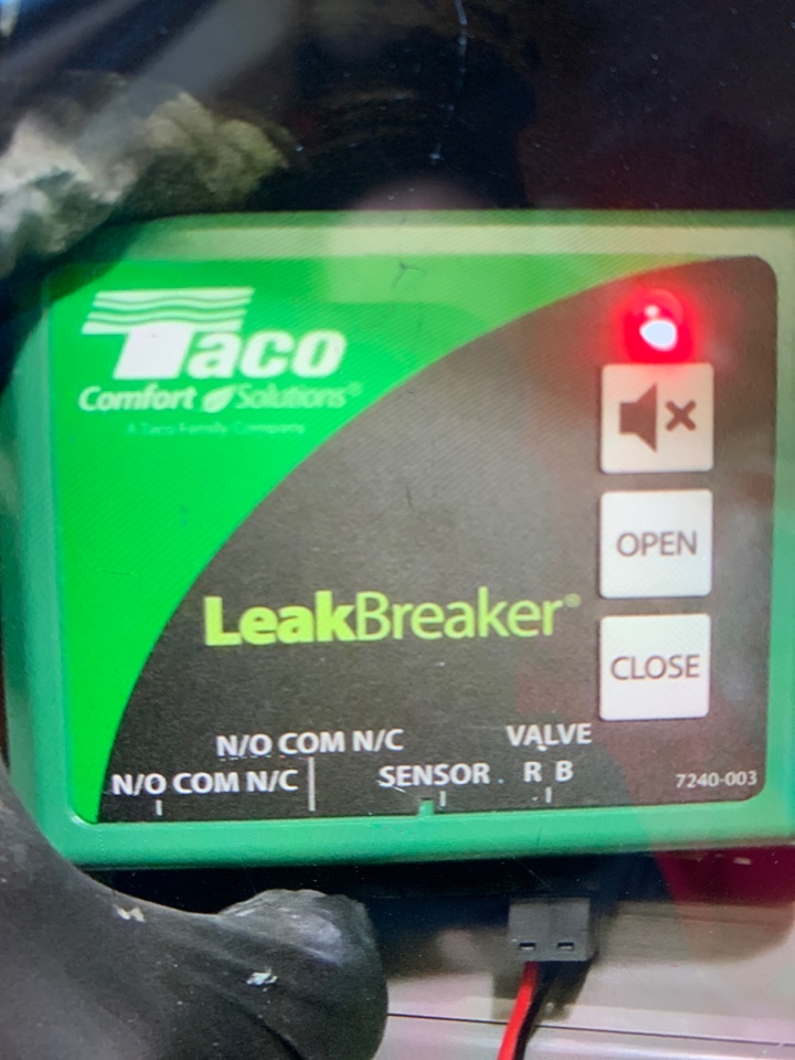 Arrived for a plumbing service call, inspected flood stop located on Rheem water heater that was randomly chirping. Installed new batteries