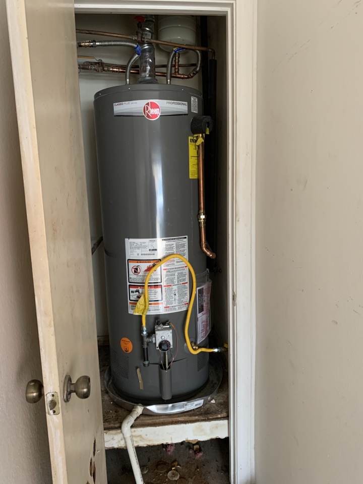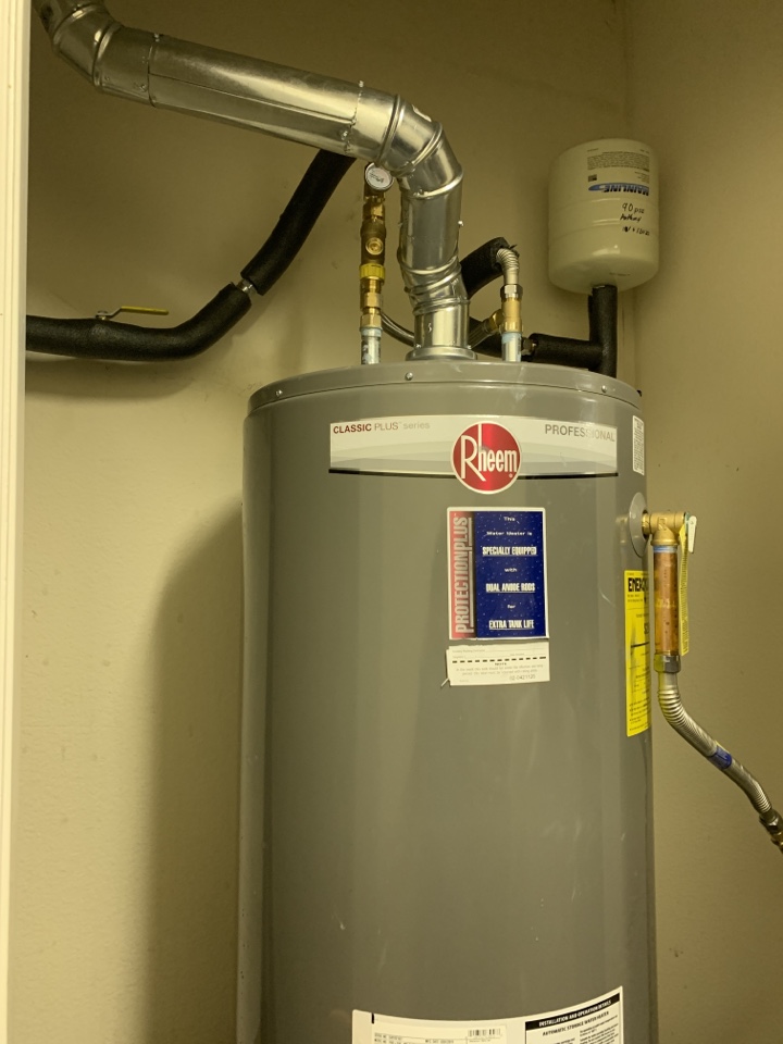 50 gal gas hot water heater install with tempering valve and extended warranty