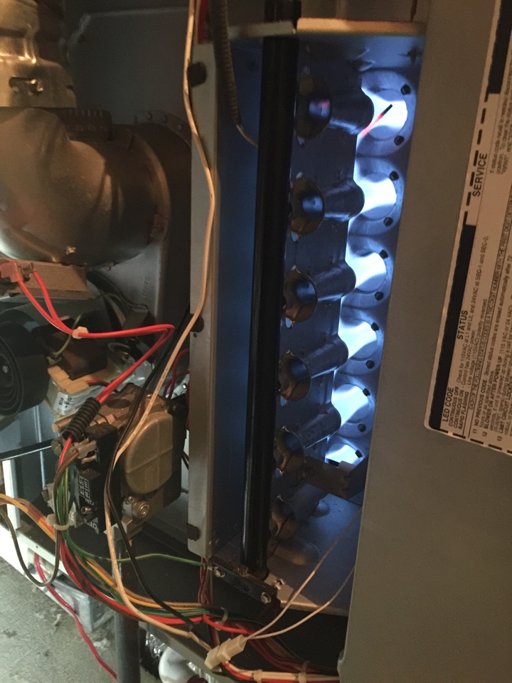 Performing heat inspection on Payne furnace. Scheduled Maintenance will keep your system running smoothly.