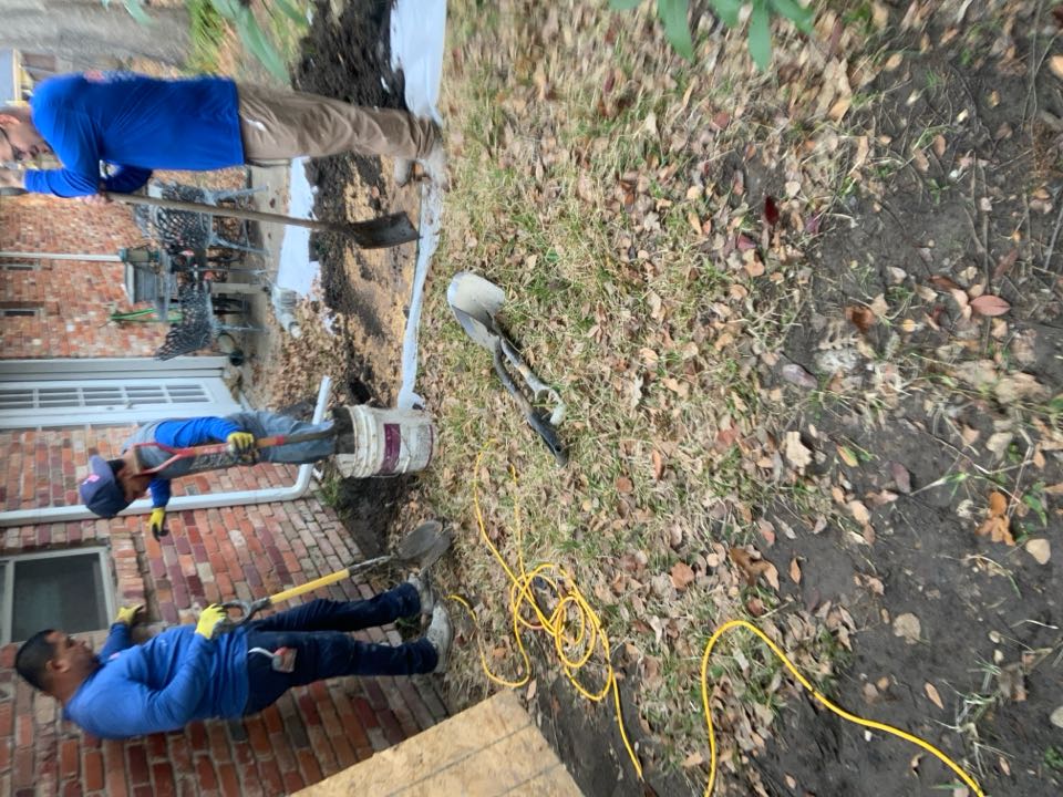 Start of excavation. Tunnel excavating under home to repair damaged cast-iron kitchen drain