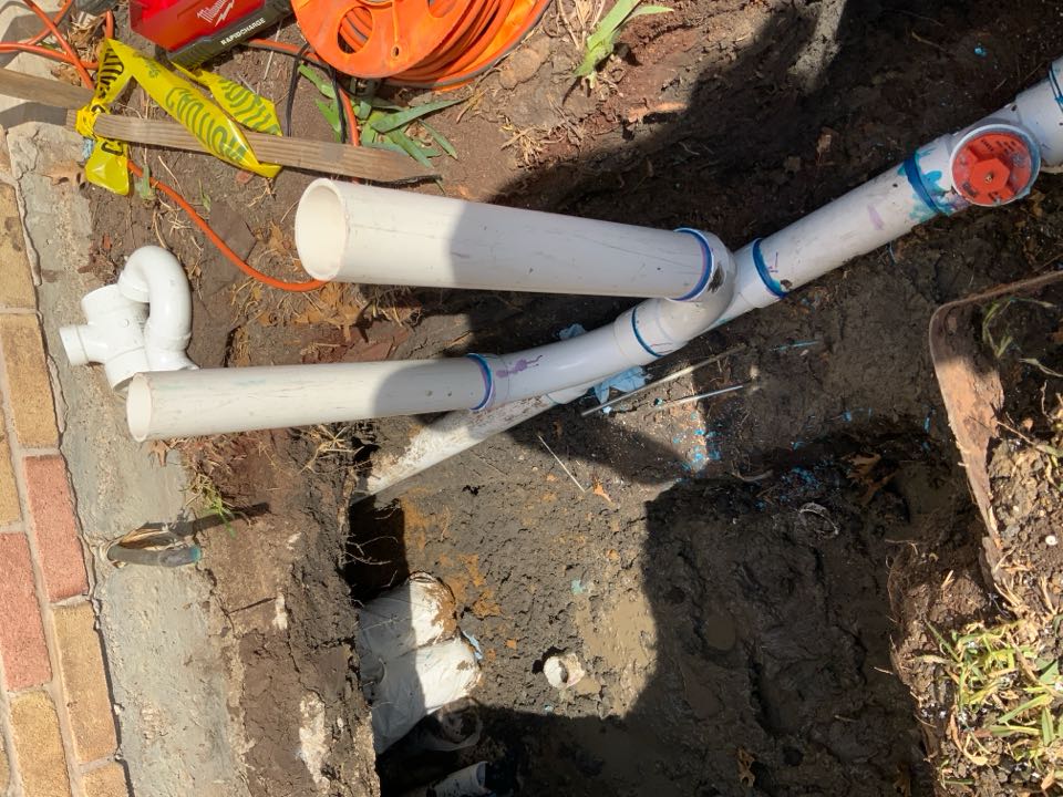Installed new PVC sewer line under home as well as installed new directional building drain clean outs in schedule 40 PVC