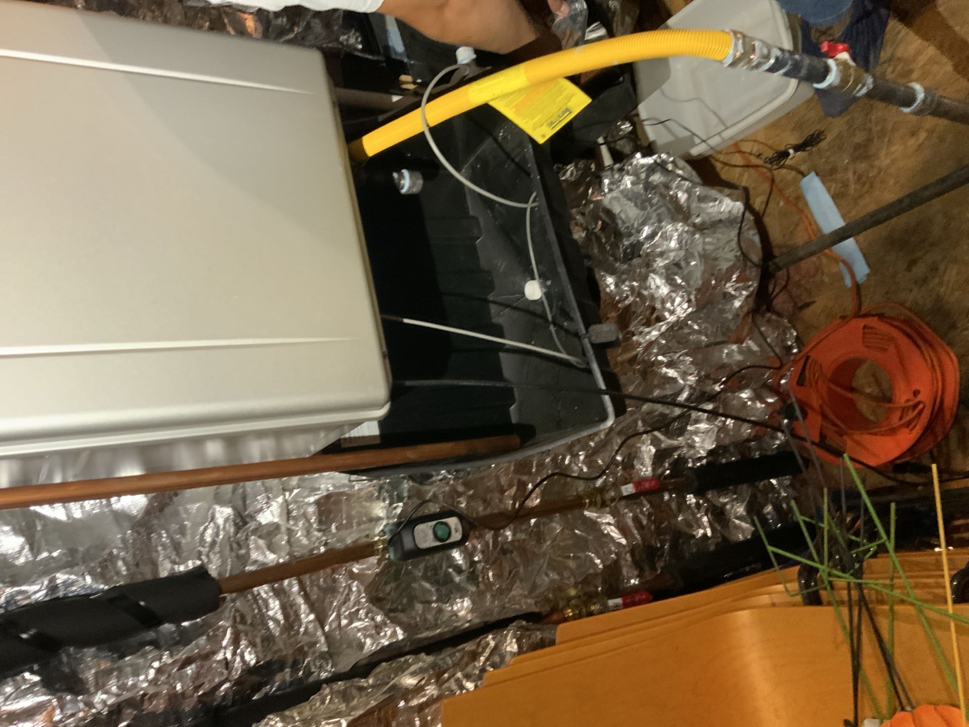 Install tankless water heater automatic FLOOD stop as well as new drain pan and condensation drain