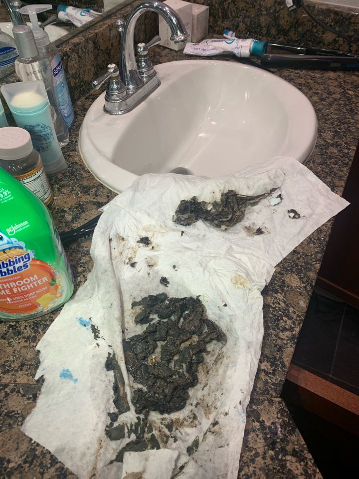 Unclogged kitchen drain due to shrimp causing a clog.