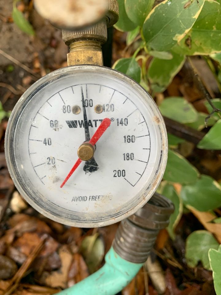 Plumbing Service Call - water pressure higher than normal - found water @ 98 psi - new construction in area - requires pressure reducing valve be installed